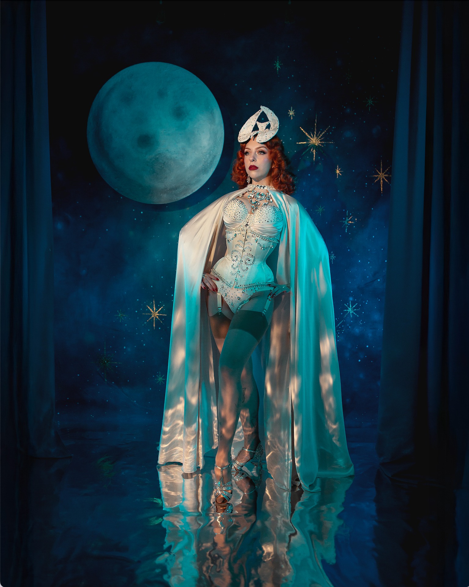International award winning burlesque performer and tattoo artist Dolly Dove blends Old Hollywood charm with seductive high fashion. Grounded in classical fine-art training, she curates each act with the eye of a painter, transforming every performance into a living work of art.